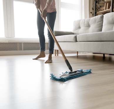 Regular sweeping and weekly mopping is all you need to keep your floors looking great.